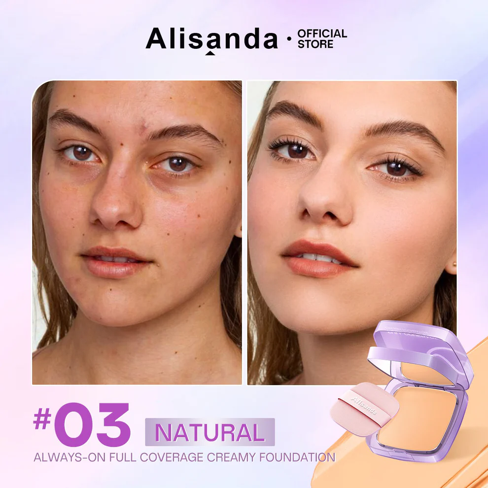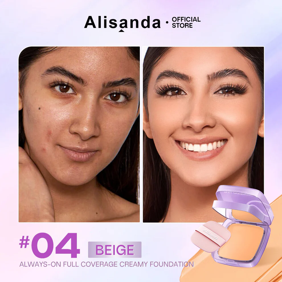 Alisanda Always On Full Coverage Foundation Cream delivers 24H waterproof, matte, and weightless full coverage that hides blemishes and stays true all day.