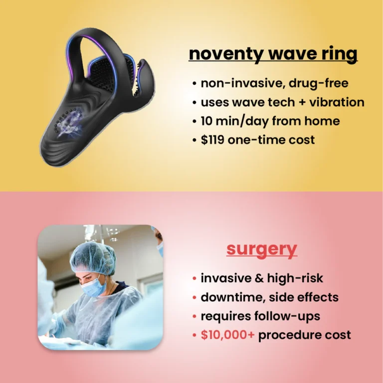 The Noventy Wave Therapy Ring is trusted by urologists and men’s health professionals for its ability to deliver clinic-grade wave therapy safely at home. The same technology used in men’s clinics to improve blood flow, restore sensitivity, and enhance erection quality is now available in a simple, wearable design.